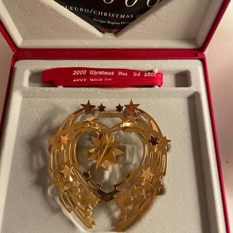Georg Jensen 1999 Juleophæng i guld. Pynten har et design med tre lys og en blomst, leveres i original æske.