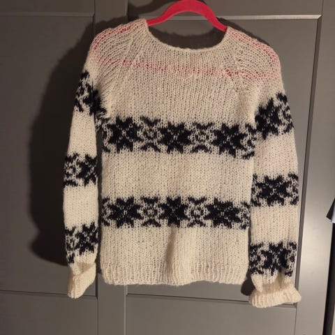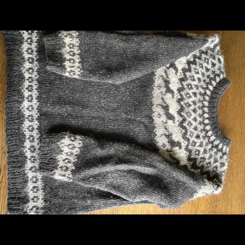 Lækker Islandsk uld sweater med synlige spor af brug. Enkelte huller som kan ses på billederne, men ikke noget stort.