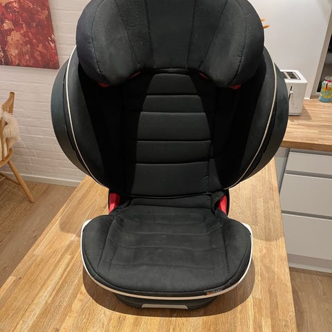 BeSafe iZi Flex autostol med en størrelse på 36 cm. Autostolen er sort og designet til børn. Den har funktioner, der sikrer korrekt montering og sikkerhed under brug.