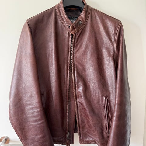 Læderjakke, str. M, Schott, Sort, Schott Perfecto model 618 i sort skind str. 42. Klassisk amerikansk MC jakke, der ikke kræver yderligere præsentation. Fremstår i god stand, og har også kun været ganske sparsomt brugt.