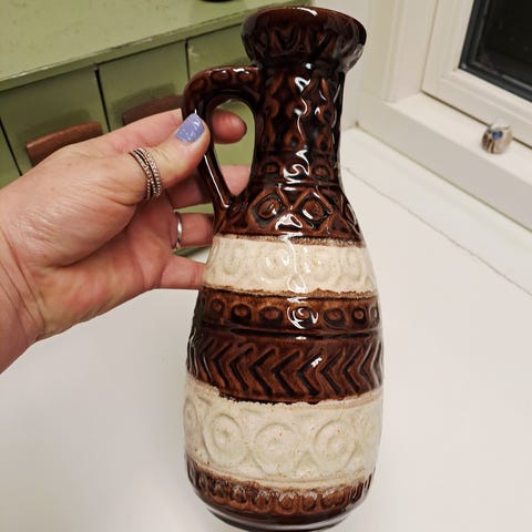 Lille West Germany vase med hank fra 1960'erne