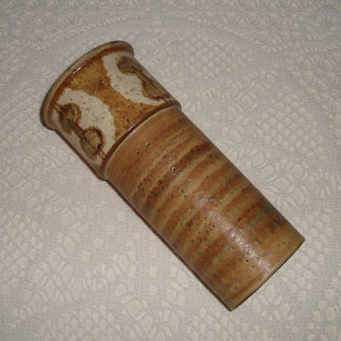 En fin, brun keramik vase fra Søholm keramik. Dekorationsnummer 3232/2. Vasen er fra 1960'erne og designet af Noomi Backhausen og Poul Brandborg. Vasen har en karakteristisk rustik finish med en brun og grøn glasur. Perfekt stand.