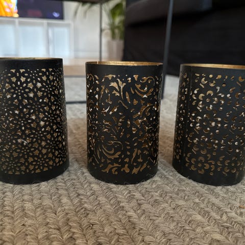 4 stk ubrugte fyrfadsstager, kan både hænge inde og ude