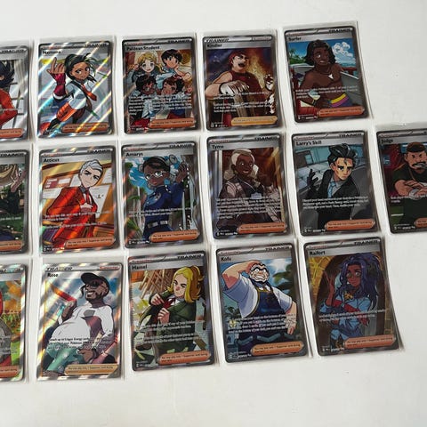 Pokémon Trainerkort samling bestående af flere kort inklusive Grand Tree, Sparkling Crystal, Kieran og Iris's Fighting Spirit. Kortene har forskellige funktioner og illustrationer fra Pokémon serien og kan anvendes i Pokémon trading card game. Kortene er i god stand og velegnede til samlere eller spillere. Giv et bud!