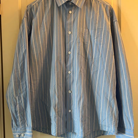 Lys beige stribet skjorte fra Casual Friday. Skjorten har lange ærmer, knaplukning og en brystlomme.