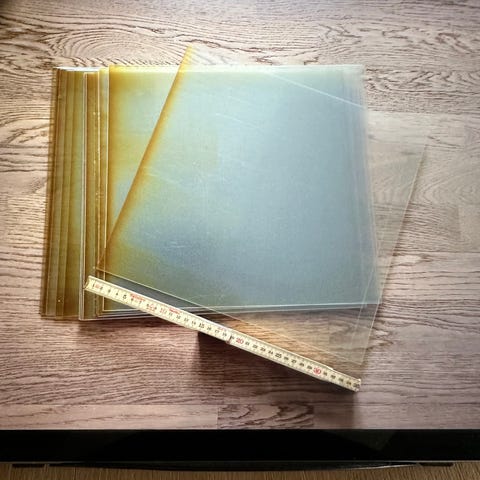 Flot plade til Verner Panton Stål reol som bundplade så man får et andet look. Det er Corian plader i forskellige farver og simuleringer …