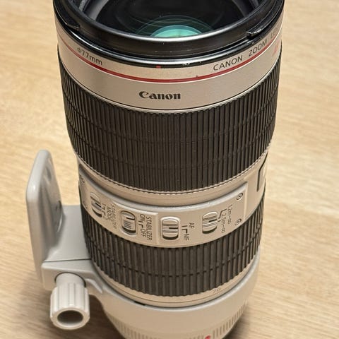 Canon Zoom linse 70 - 200 mm bl 2.8 L IS USM med image stabilizer. Aldrig brugt i regnvejr eller dårligt vejr.