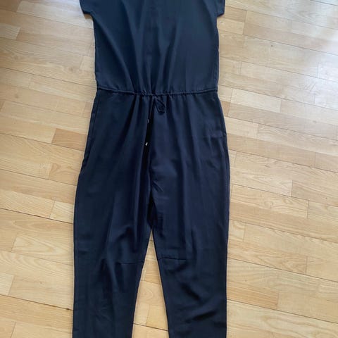 Mads Nørgaard mørkegrøn buksedragt i størrelse 42. Buksedragten har rund halsudskæring, kort ærme, en lynlås bagpå og snøre i taljen.