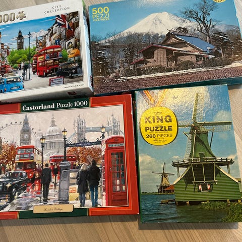 Kuffert lidt brugt, se billeder, brikker fine. Mange timers leg og læring i puslespillet.
