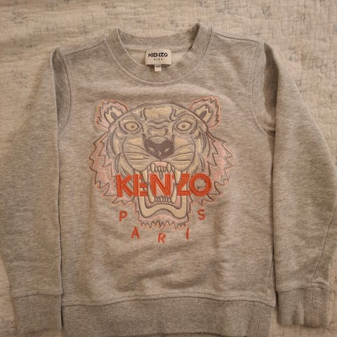 Kenzo Kids sweatshirt i blå farve, størrelse 140, designet til både drenge og piger. Trøjen har et tigerprint foran og er lavet til børn.