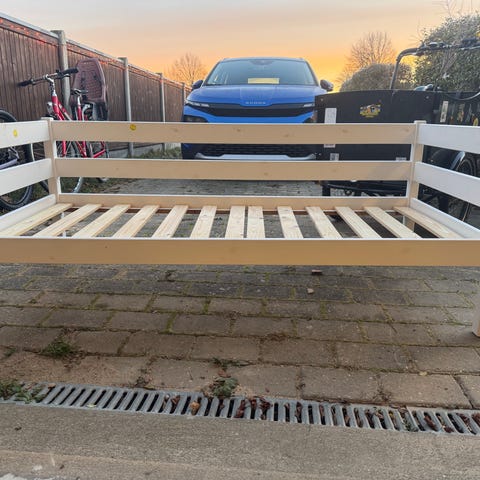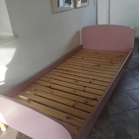Rigtig sød og god junior seng. Der medfølger madras og en sengehest.