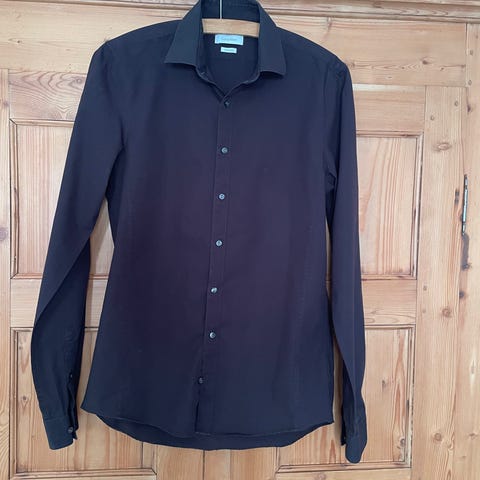 Calvin Klein skjorte i størrelse L til mænd. Skjorten er grøn og har en klassisk krave. Den har knaplukning foran samt en brystlomme med Calvin Klein logo. Materialet er ikke specificeret, men skjorten fremstår som en let og behagelig model til hverdagsbrug.