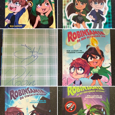6 stk Robinsamsebøger. Sælges samlet med den ubrugte sweatshirt for 300kr.