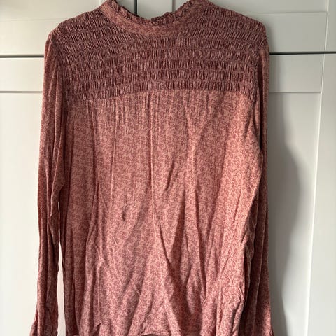 Second Female Bluse i beige farve, størrelse L. Blusen er designet til kvinder og har en løs pasform med rund hals og bindebånd ved udskæringen.