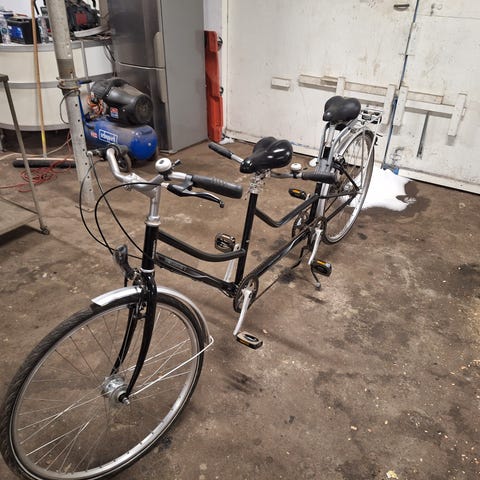 Tandem hvor det handicappede barn sidder foran.