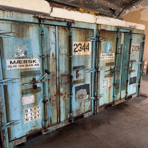 Mobil container med trappetrin og hylder