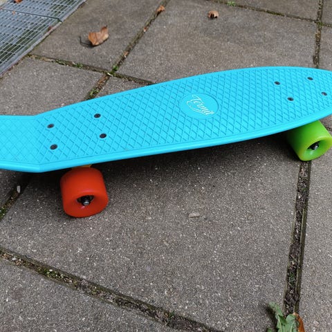 Det stribede har lidt kosmetisk skade på undersiden, men køre helt fint og det flerfarvede skateboard har aldrig været brugt.