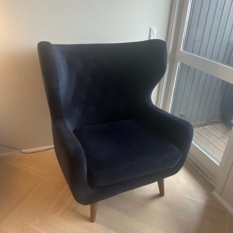 Blair lænestol fra Sofacompany. Farve er Amber Matte Velour.