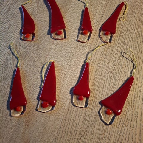 Glas Nisser .Helt skønne Nisser, er håndlavet med hver sit udtryk og længde mellem 6 og 8 cm i højden