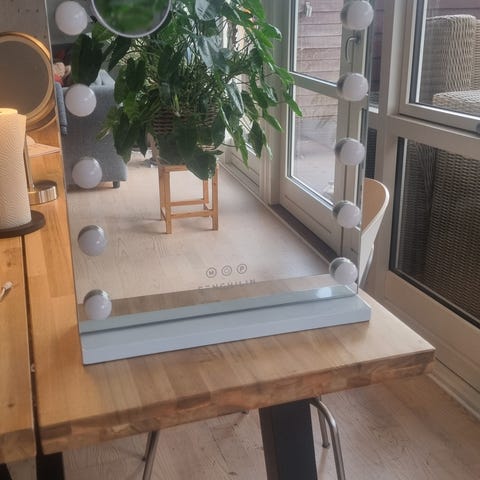 Skuffe under spejl som fint kan bruges til diverse nips og sminke.