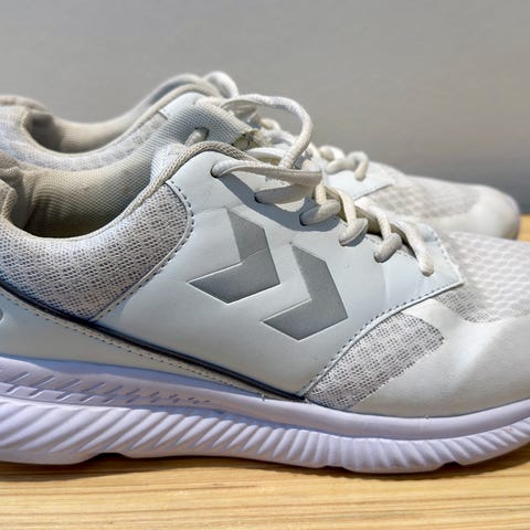 Hummel Løb Sko i størrelse 41. Skoene er sorte med hvide detaljer og har en hvid sål. Egnet til løb og andre sportsaktiviteter. Materialet fremstår som tekstil og syntetisk, designet til komfort og støtte under fysisk aktivitet.