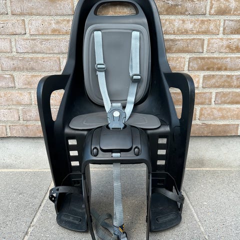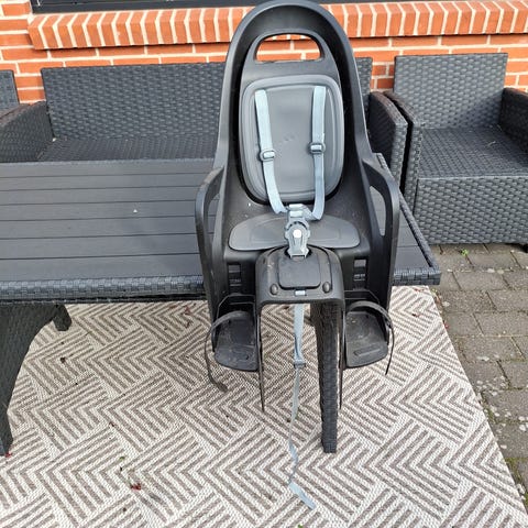Velholdt cykelstol/barnestol let at montere. I farverne sort og grå. Ny pris 599 kr.