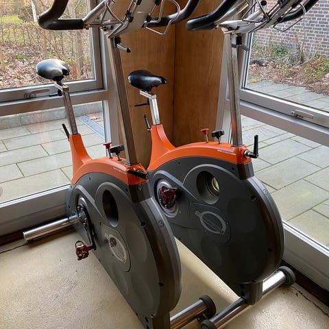Original klassiak spinningcykel med trinløs niveau. Tidligere brugt i fitnesscenter med klassisk klikpedaler. Fungere upåklageligt.