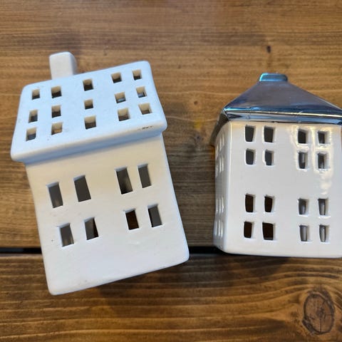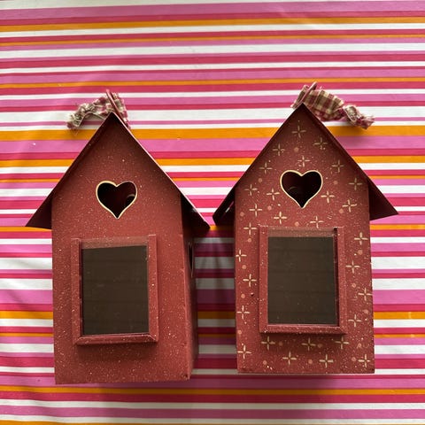 Metal hus til fyrfadlys, Lille metalhus til fyrfadlys og lille hang i toppen.