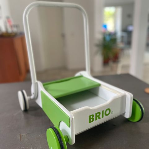 Sort gåvogn fra BRIO. Der er lidt slidmærker på gåvognen, men den fejler intet. Brugt til ét barn.