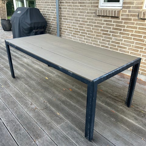 Fint havebord. Har synlige brugsspor, som det ses på billederne 😊 Afhentes på Langø