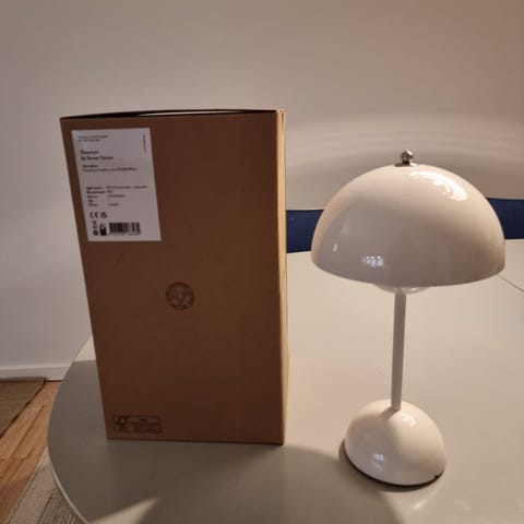 Lampen er designet af Verner Panton, og er produceret af &TRADITION. Modellen hedder VP9 transportabel og trådløs bordlampe.