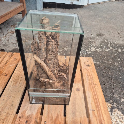 Dejlig terrarie. Kun til salg fordi vores slange var blevet for stor til det. Det er med skydedør og er lavet af glas.