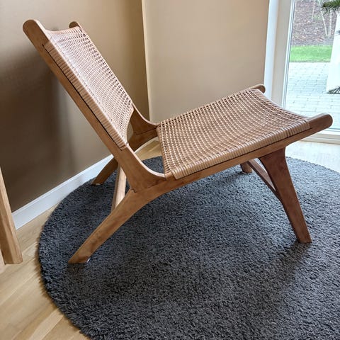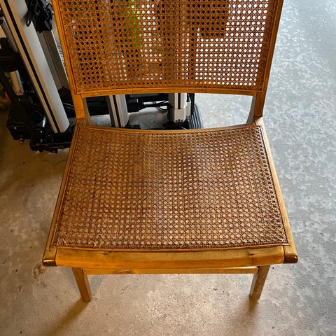 Kunne godt bruge en kærlig hånd, da flet er i stykker flere steder og træet har plamager. Kan evt fikses med lidt sæbespåner