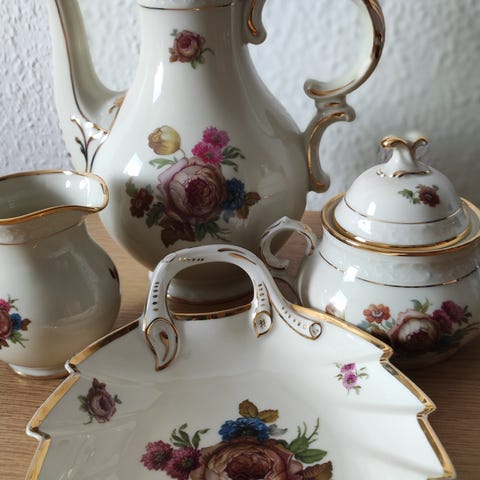 Porcelæn, Kaffekande, hjerte fad,kopper, tallerkner