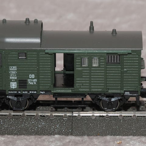 Vognen er brugt og har brugsspor i form af lidt støv/snavs. Desuden er der tre små afskallinger at tagets farve. Der er monteret Märklin bøjlekoblinger.