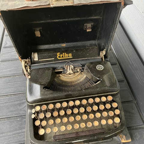 Smuk, antik Erika skrivemaskine fra ca. 1939-1940, produceret af Seidel & Naumann i Dresden, Tyskland.