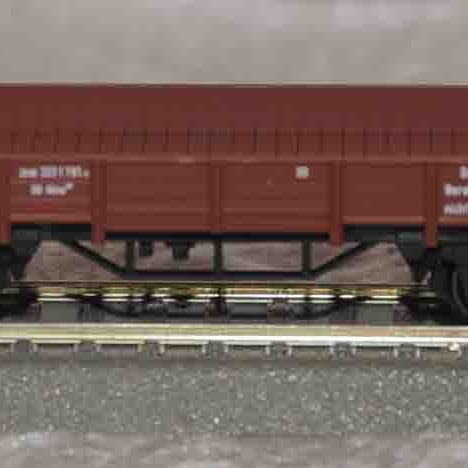 Vognen er brugt. Bortset fra lidt støv i bunden af laddet, fremstår vognen næsten som ny. Der er monteret Märklin bøjlekoblinger.