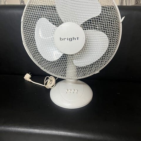 Gulvventilator brugt få gange sælges for 150 kr. Den er ca. 97 cm. høj, og foden har en diameter på ca. 40 cm. Blæseren er ca. 44 cm. i diameter, og den kan indstilles på flere hastigheder samt dreje fra side til side.