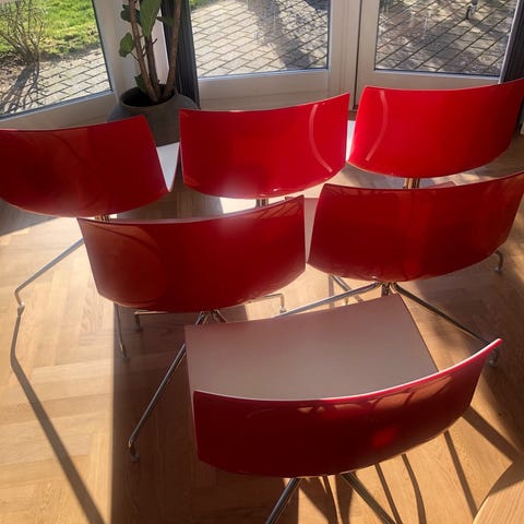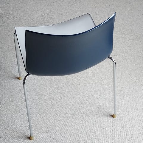 Arper Catifa 46 stol. Hvid mat indvendig og højglas blå udvendig. Diverse brugsspor.