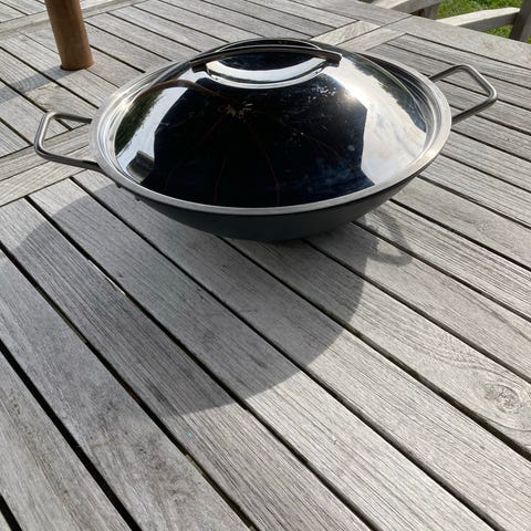 Wokpande fra Eva Trio. I god stand, men med lette brugsspor