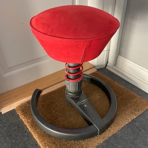 Swopper kontorstol som man sidder godt på. Godt for ryggen. God stand og fin i den saddelagtige farve.