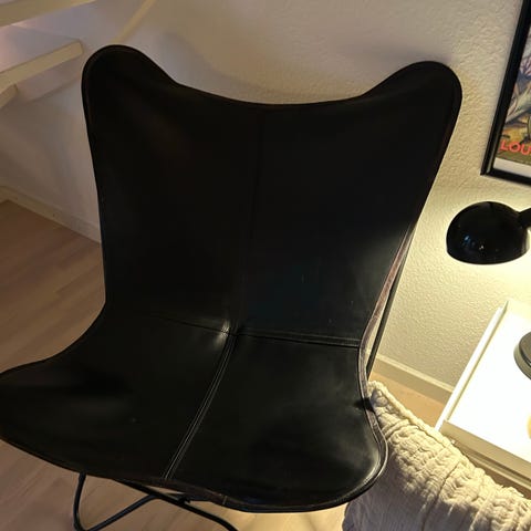 Flagermus stol sort læder