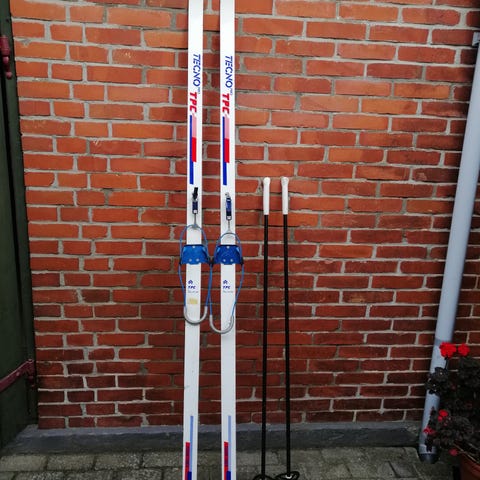 To par velholdte Splitkein SP40 ski (190 cm. & 205 cm.) inkl. stave af mærket SWIX (130 cm & 150 cm.). Samlet pris.