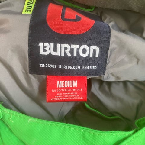 • Skijakke – Burton – XL barn – svarer til 14 – 16 år: https://www.burton.com/dk/en/size-charts - 250 kr