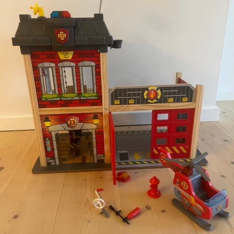 Brandstation med diverse tilbehør af mærket Hape.