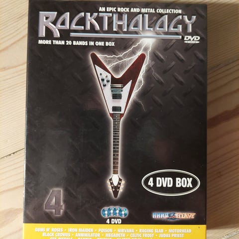 DVD-boks med fire ubrugte skiver fyldt med musik-videoer fra bl.a. Bowie, Led Zeppelin, Queen m.fl.