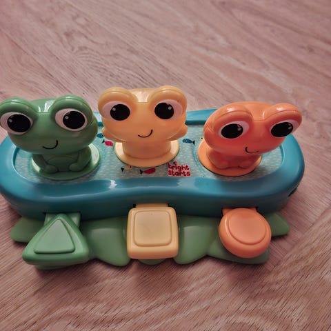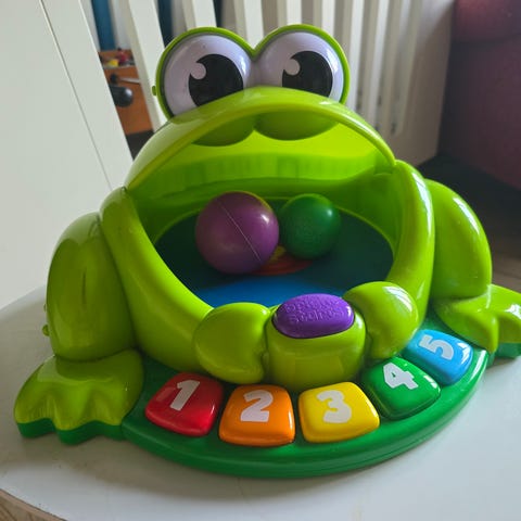 Sjov frø hvor f.eks. bolde kan puttes i munden. Kan indstilles på forskellige melodier og lyde. Anbefalet alder: 6-18 måneder.
