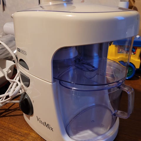 Juice Extractor i rustfrit stål og sort plast. Designet til effektiv juiceudvinding med stor påfyldningsåbning. Leveres med beholder til juice og frugtkød. Velegnet til daglig brug i køkkenet.