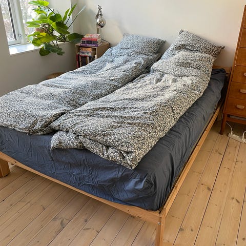 Sengen er fra IKEA mærket skåren. 140x200