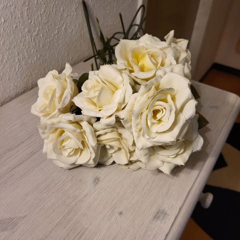IKEA kunstige blomster buket bestående af forskellige blomster i pink og beige nuancer. Buketten er velegnet til dekoration og indeholder materialer, der efterligner naturlige blomster.